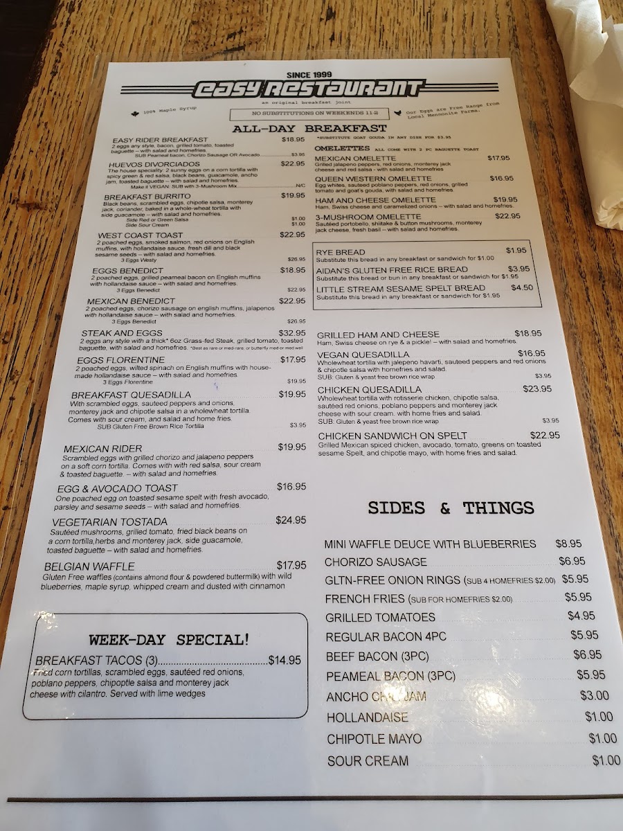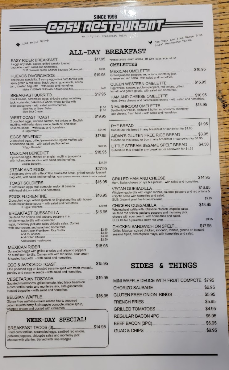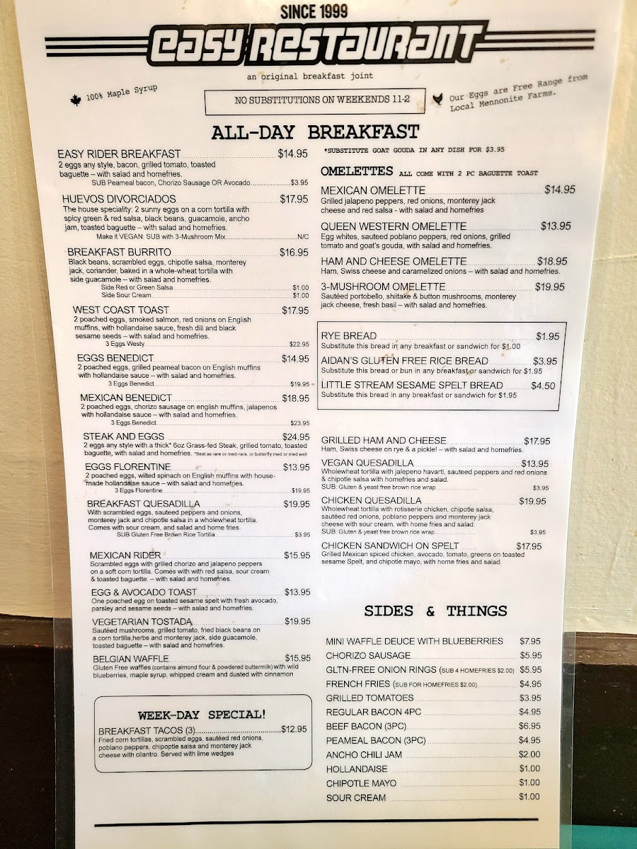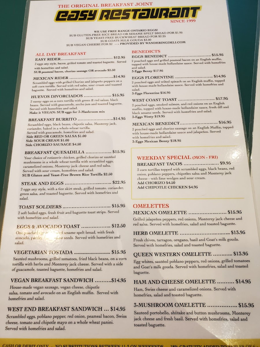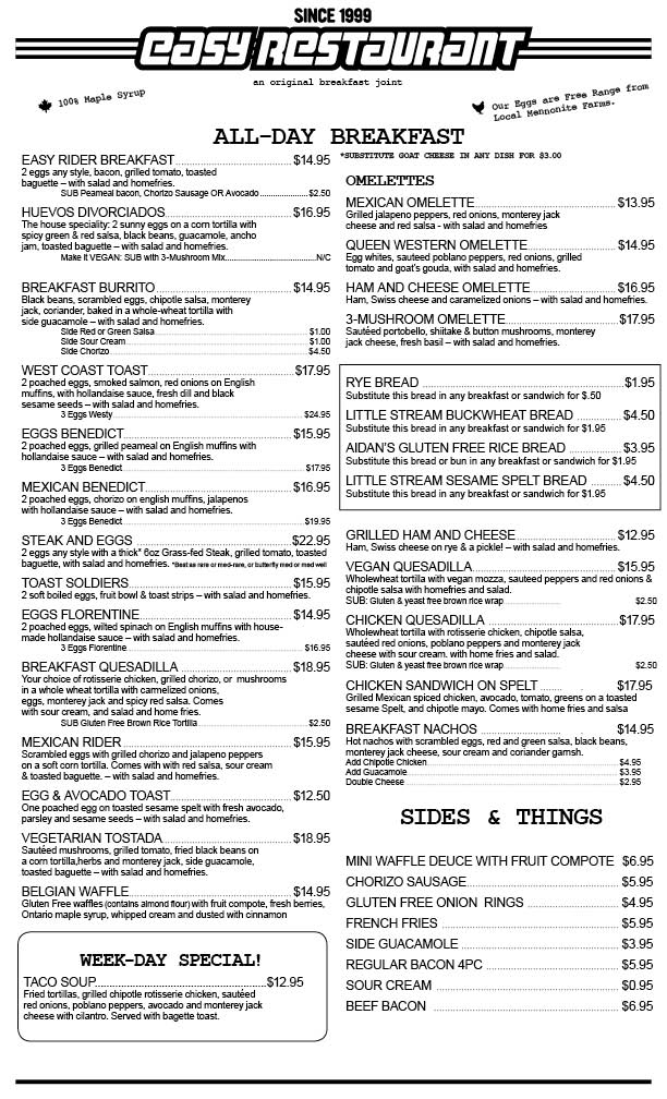 Welcome to Easy Restaurant, your new favorite dining destination located at 1645 Queen St W, Toronto. This bustling spot is a hidden gem known for its inviting atmosphere and friendly staff. Featuring a unique blend of Mexican and classic breakfast dishes, Easy is perfect for those seeking something more than your typical brunch fare.